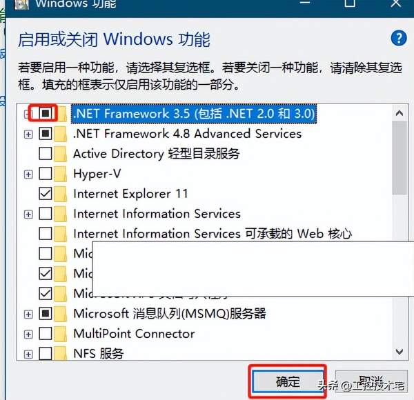 3.勾选“.NET Framework 3.5”,点击确定