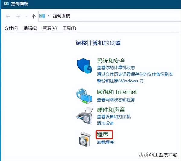 1.进入WIN10的控制面板,点击“程序”