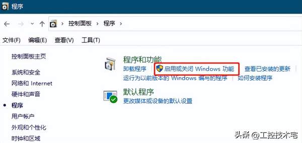 2.点击“启用或者关闭Windows功能”
