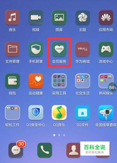 点开华为手机的桌面中的“会员服务”应用,如图所示
