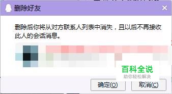 选择删除好友后会有弹出一个提示框,注意提示信息,如果上面说明删除QQ好友后,你也会从对方联系人列表中消失,确定后,表明彻底删除好友成功。