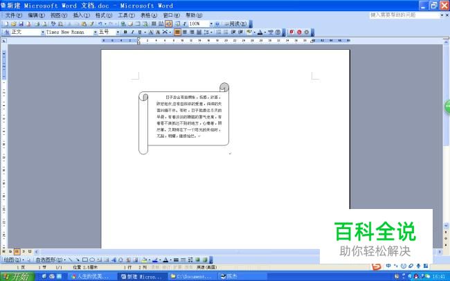 我们在用word编辑文章时,可以使用不同的形状去包含内容,让文章更加形象优美。那么怎么用word2003做出书卷效果的文字呢?