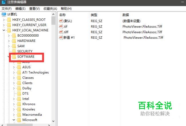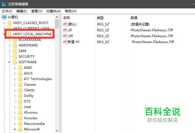 在列表中,仔细的找到 HKEY_LOCAL_MACHINE