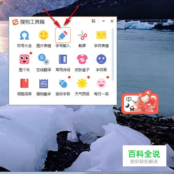 然后找到搜狗工具箱里面的“手写输入”工具,点一下,如果没有安装会自动安装好的。