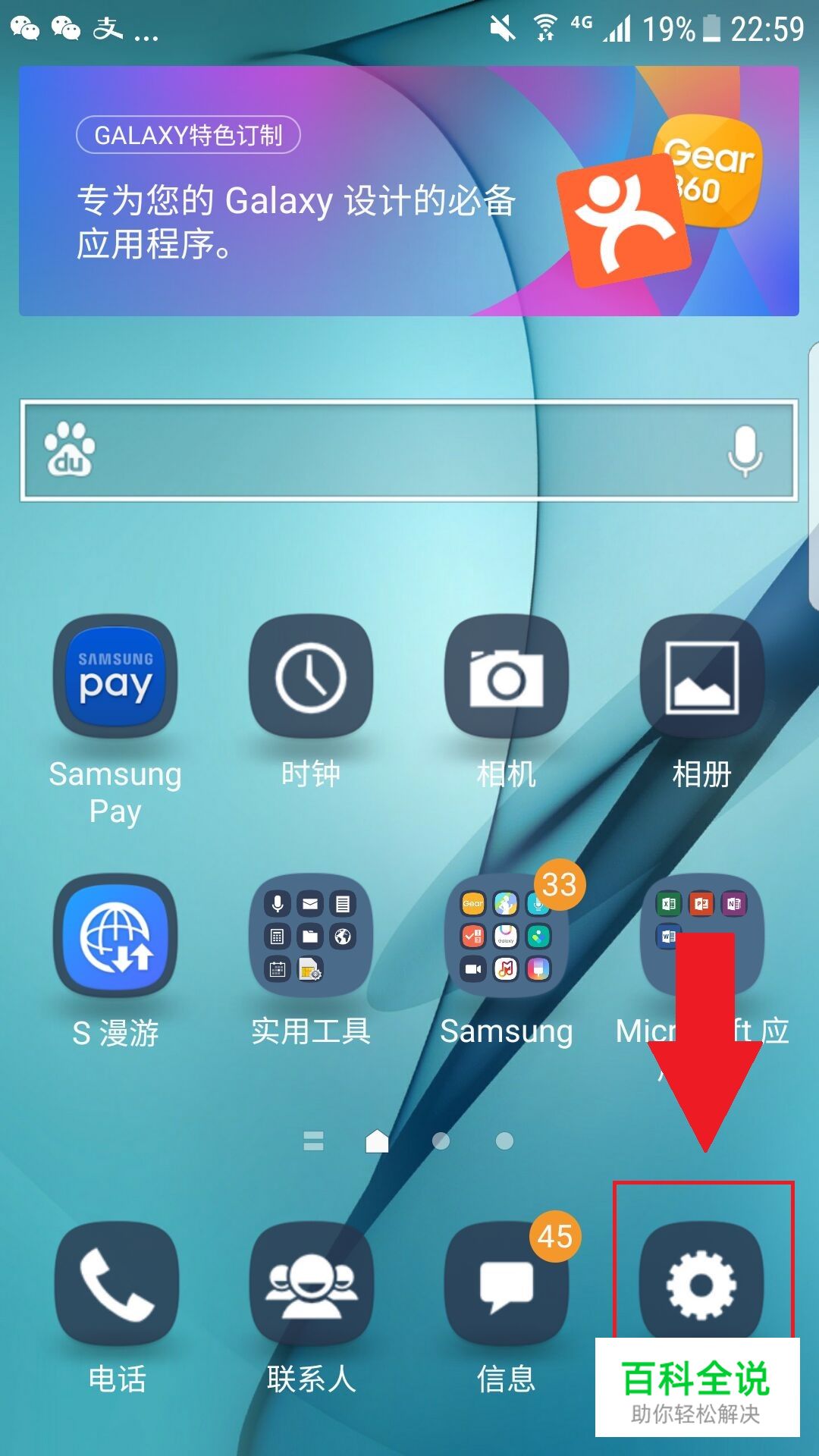 三星S7/S7edge有三种方式可以截屏。第一种,点击手机桌面【设置】选项。