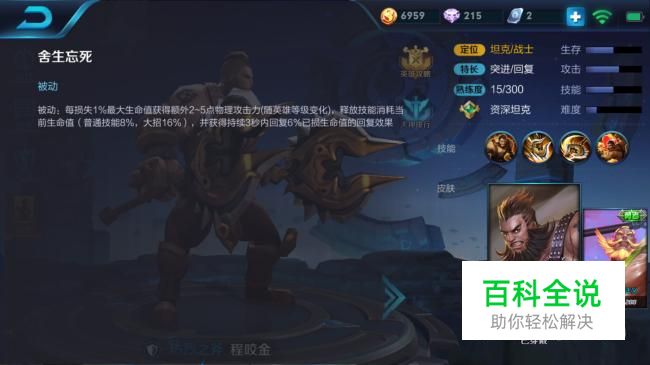 舍生忘死(被动):每损失1%最大生命值获得额外2~5点物理攻击力(随英雄等级变化),释放技能消耗当前生命值(普通技能8%,大招16%),并且获得持续3秒内回复6%已损失生命值的回复效果