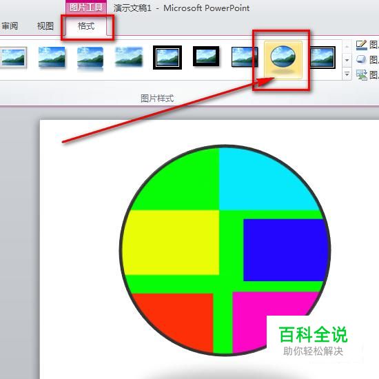 接着我们点一下图片,然后找到“格式”菜单,这里可以把图片设置成圆形。