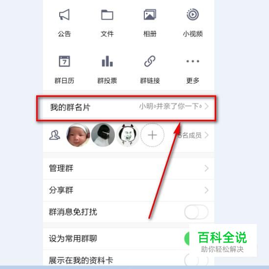 然后点击“我的群名片”,然后开始修改群名片。