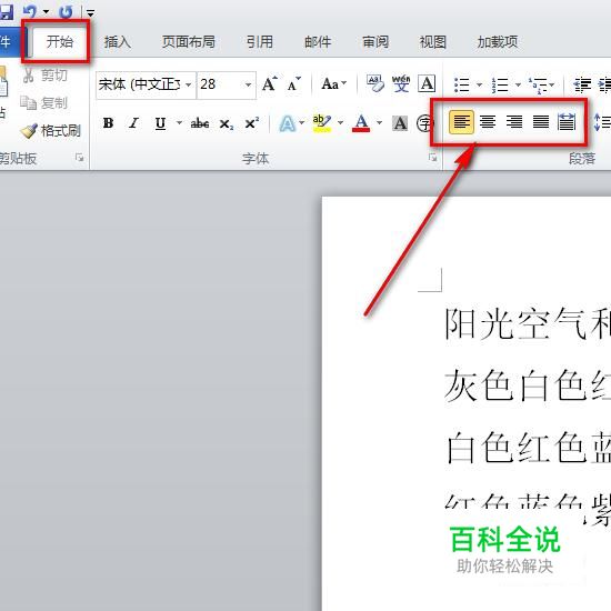 然后点击开始菜单下的文字对齐方式图标,如图所示,这里的图标从左到右分别是文本左对齐,居中,文本右对齐,两端对齐和分散对齐。