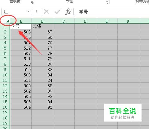 首先打开我们要进行筛选的表格,找到表格左上角的三角形符号,点击它可以选中全部区域。