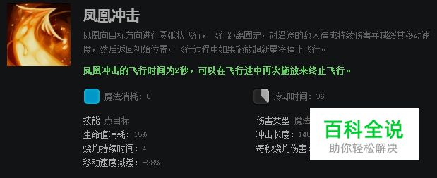 凤凰冲击是凤凰向指定目标冲刺并返回原位,对冲刺过程中触碰到的单位造成伤害,冲刺过程可以随时终止,并停留在终止位置。