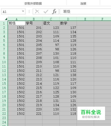 打开我们的excel工作表,并选中我们的表格数据范围。