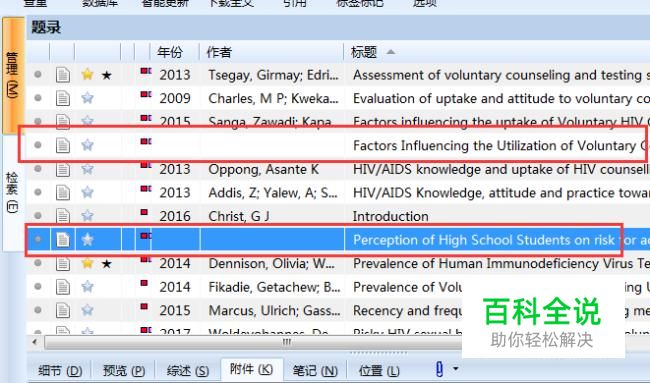 首先导入文献,可以看到其中几篇文献的题录没有更新完全。
