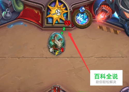 游戏开始,对面有一只‘苦潮多头蛇’,该随从效果是每次受到伤害都会对自己方的英雄造成3点伤害,苦潮多头蛇总共7点血,烧3次也就是21点血,加上武器砍一下就是23点血,会剩下2点血。关键就是鞭尸,让苦潮多头蛇多促发一次效果。