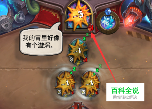 第三步:此时我方水晶数量已经耗尽,所以使用硬币恢复1个法力水晶,并且促发两个狂野炎术士的效果,让苦潮多头蛇促发两次次效果;BOSS剩下8点血。