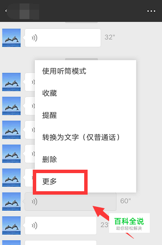 首先我们按住要转发的语音,在弹出的选项中点击【更多】。
