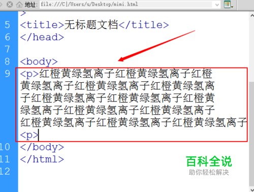 第一步,打开软件,新建一个html文件,设计一个段落<p></p>。