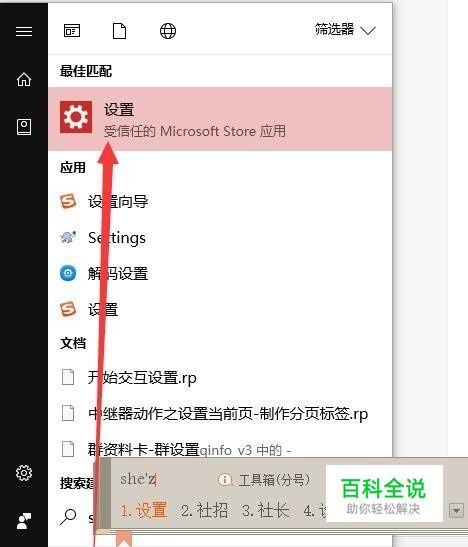 首先找到我们的电脑最下面在输入框中输入设置,然后可以看到上面最佳匹配的设置按钮