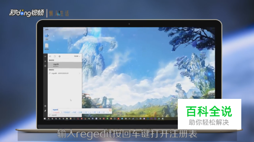 首先点击开始菜单,输入regedit按回车键打开注册表。