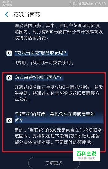 第四步进去之后,点击了解花呗当面花,如下图所示: