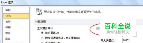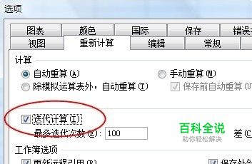 Excel 2007/2010/2013:单击“Office按钮(文件)→选项→公式”,在“计算选项”区域勾选“启用迭代计算”。 “最多迭代次数”可保持默认的“100”。