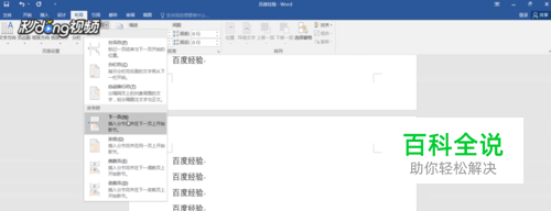 将光标移动到需要标记页码的最前面,点击“布局”,选择“下一页”分节符。