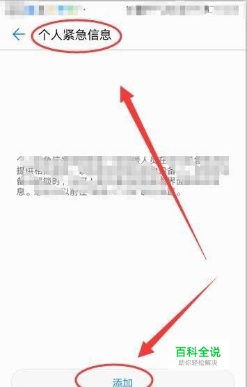 个人紧急信息界面中,选择添加选项。