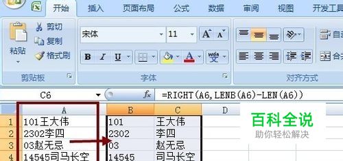 在单元格C1输入公式 =RIGHT(A1,LEN(A1)-2) 即可快速分离出中文汉字。 剩下的单元格,直接往下拉公式(或者复制粘贴公式)即可,这里就不赘述了。