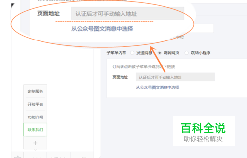 “跳转到网页”:可在自定义菜单中直接选择素材库中的图文消息作为跳转到网页的对象。认证订阅号和服务号还可直接输入网址。未认证不可用。“发送信息”:可发送信息类型包括文字、图片、语音、视频和图文消息等。需要注意的是,未认证订阅号用户暂时无法支持文字类型。“跳转小程序”自定义菜单可跳转已绑定的小程序,本公众号尚未绑定小程序,点击去【去绑定】。