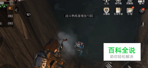 然后我们卡着石头向它开火即可,如下图所示,战斗熟练度不断的增加