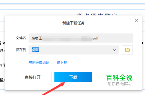 点击后会出现一个弹窗,点击下载就完成了,拿去打印店打印出来就可以了。建议准考证选择保存到桌面,方便查找