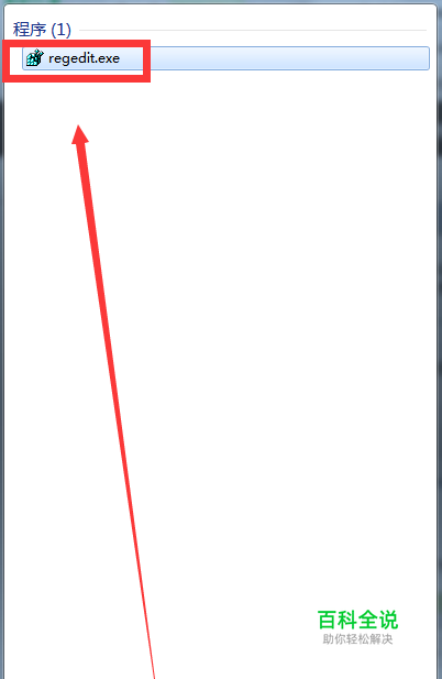 点击开始按钮,输入【regedit】确定,点击regedit.exe打开注册表编辑器。