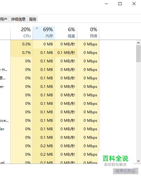 在上方有cpu,内存,磁盘,网络的占比。点击内存,就可以让所有的进程按占用内存大小的方式进行排序。