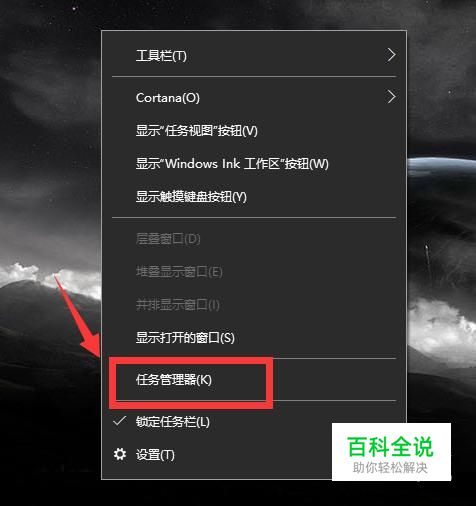 在任务栏中右击,点击列表中的任务管理器。