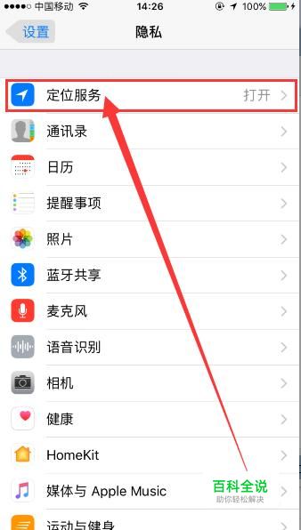 进入到隐私选项之后,在隐私设置的界面里找到“定位服务”(就在隐私界面的最上面)点击进入。