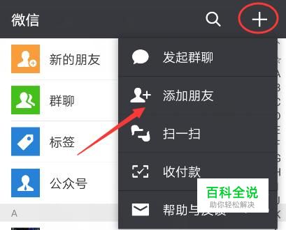 这个可以微信上的公众号上就可以完成,打开微信,点击右上角的“+”,点击“添加朋友”。