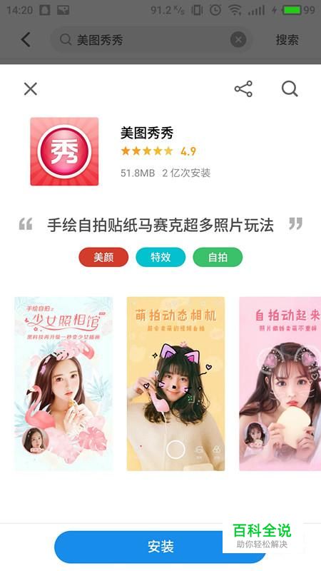首先在应用商店下载安装“美图秀秀”,软件为免费。