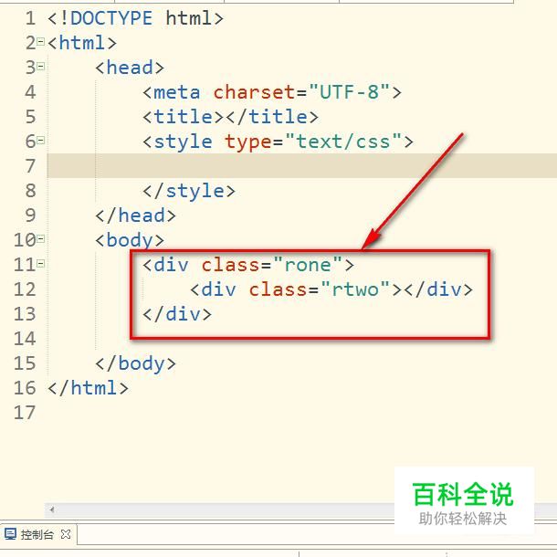 如图,书写两个div,一个div里面包含有另一个div,并且分别给它们添加一个类。