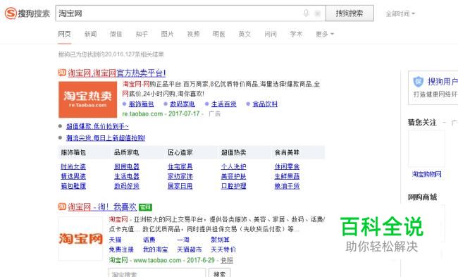 首先利用搜狗搜索淘宝官网,并点击进入官网首页,再点击首页右上角的“联系客服”。