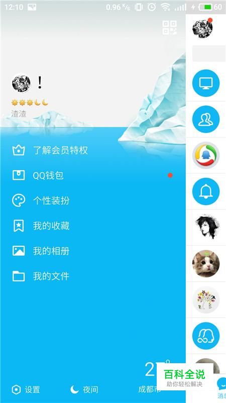 进入手机QQ主界面,选择左上角“个人头像”