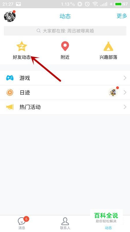 进入动态界面,选择“好友动态”