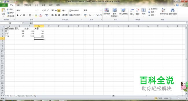 光标分别放在“科”和“分”前面,按空格键调整“科目”和“分数”的位置,调好后如图所示