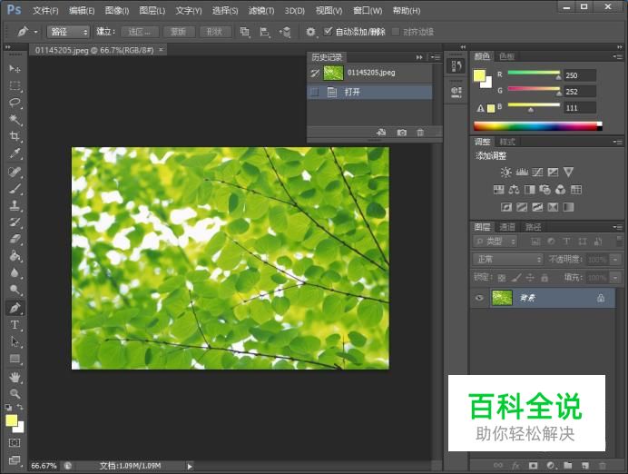 新建一块画布,并打开一张树叶背景图。