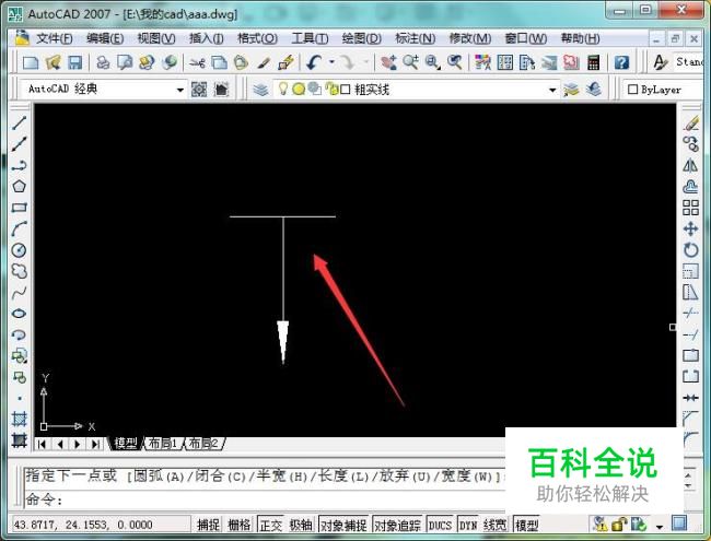 命令栏中提示我们指定插入基点。这里以两直线交点为基点,鼠标左键点击确认,如图所示: