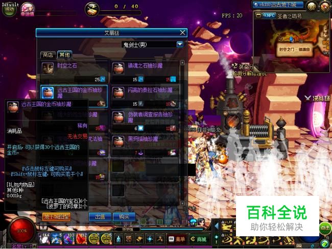 在时空之门-镇魂曲地区,艾丽丝的商店可以用6个远古王国的宝石和2个波罗丁的印章兑换一个远古王国的金币袖珍罐,从中可以开出30个远古王国的金币。