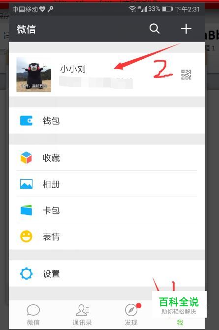 打开微信,点击右下角“我”,然后点击如图指示的地方。