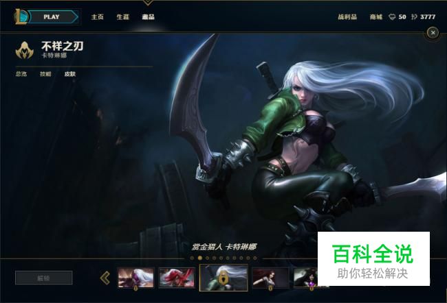 赏金猎人 卡特琳娜,属于原画皮肤,同时也使小编第一个卡特的皮肤,不推荐入手;(无特效皮肤,价格:3900点券)