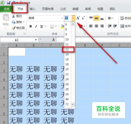 然后我们选中表格,然后在开始菜单调整字体的大小,把字体调整到合适的大小。