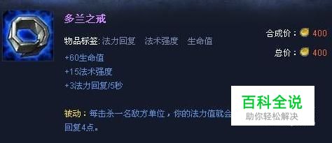 出门装:多兰之戒+两瓶药,机器人本人Q技能非常的消耗蓝量,可以出一个多兰之戒提高蓝量回复。