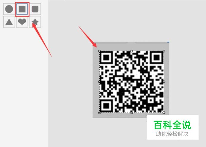 点击形状抠图选项在弹出的对话框内选择矩形选项,使用矩形在二维码上框选出矩形框,如图所示:
